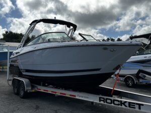 Introducing the stunning 2025 Monterey 255 Super Sport, a new addition to the cruisers category that promises an exhilarating experience on the water. With an impressive overall length of 28.67 feet, this vessel combines sleek design with robust performance. Crafted from durable fiberglass, the hull ensures a smooth ride while maintaining agility. Powered by a formidable Mercury 350XL V10 outboard engine, delivering 350 horsepower, this boat is designed for those who crave adventure. The stainless steel propeller enhances efficiency and responsiveness, making every journey memorable. The Monterey 255 Super Sport is equipped with essential features that elevate your boating experience. Its modern design and advanced engineering make it a perfect choice for both leisurely outings and spirited excursions. Embrace the thrill of the open water with this exceptional cruiser, where style meets performance seamlessly.