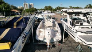 Entertainment Package Retractable Ski Tow Pylon, Removable Bow Table, Additional Aft Table Bracket, Fusion Transom Remote Control, & Hella Underwater LED Lights (2)