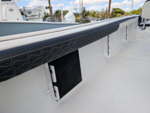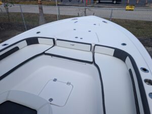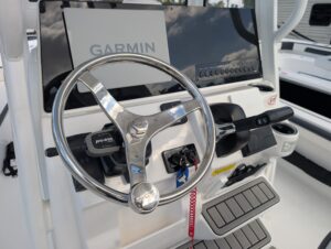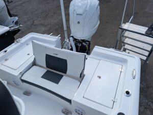 Standard: 10" Hydraulic Jack Plate, Single 12" GPS, White Cushions w/ Black Insert, Bow Seat Cushions & Backrest, JL 4 Speakers, 2-30 Galon and 1-12 Galon Insulated Livewell, Compass, Dual Battery Switch, Raw Water Wash Down, Dual Swim Platforms