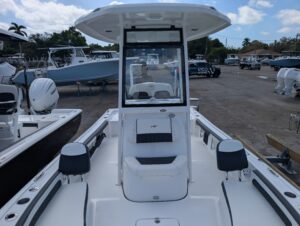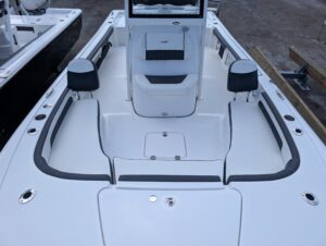 NEW ARRIVAL!! The 2300 Carolina Bay has the same large casting deck and big bow flair as the 2000 and has cast net storage in the floor, fold up jump seats and 7 foot rod storage. The 2300 is a impressive riding bay boat that can handle big water.
